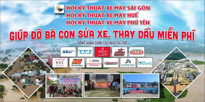 Sau khi nước rút, nhiều khó khăn vẫn hiện hữu do phần lớn xe máy bị ngập nước và hư hỏng nặng, không thể khởi động để di chuyển. Trước bối cảnh này, Hội Kỹ thuật xe máy Sài Gòn phối hợp với các Hội kỹ thuật xe máy trên toàn quốc (Phú Yên, Huế, và các khu vực khác) cùng các công ty cung cấp phụ tùng, phụ gia đã phát động chương trình từ thiện sửa chữa xe máy miễn phí cho bà con vùng lũ tại Phú Yên (Thôn Xuân Mỹ, xã Hòa Mỹ).