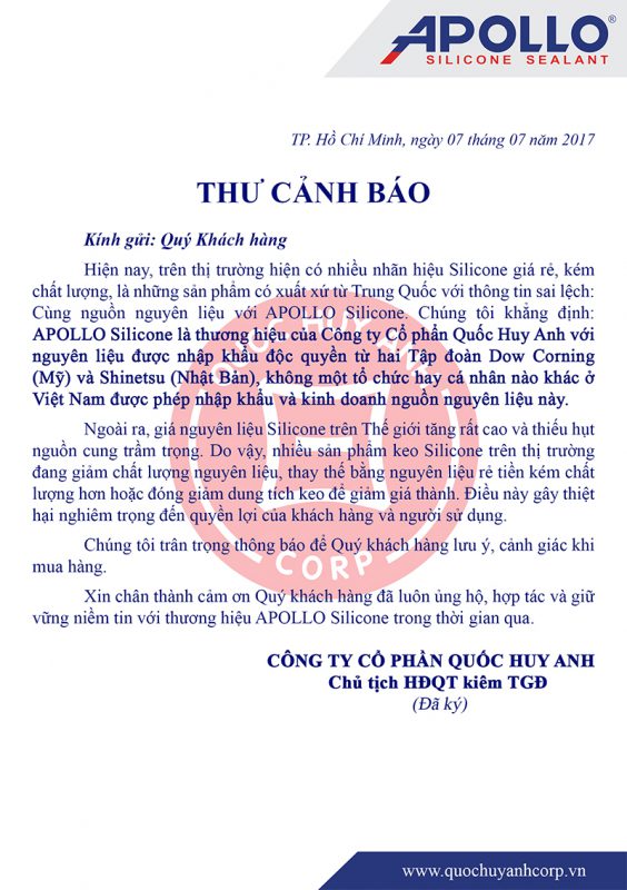 (Thư cảnh báo keo apollo giả và keo apollo nhái )